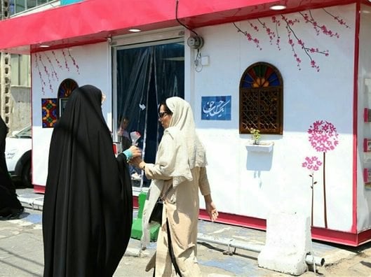 According to a Farsi report by the Young Journalists Club (YJC), the women in these portable cabins help other ladies who go to their pavilions to experience correct hijab and understand why it is necessary in Islam.