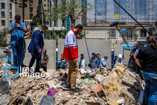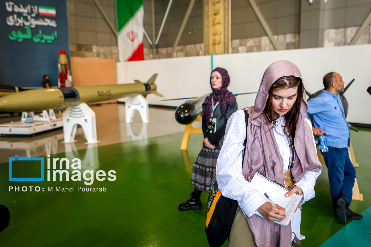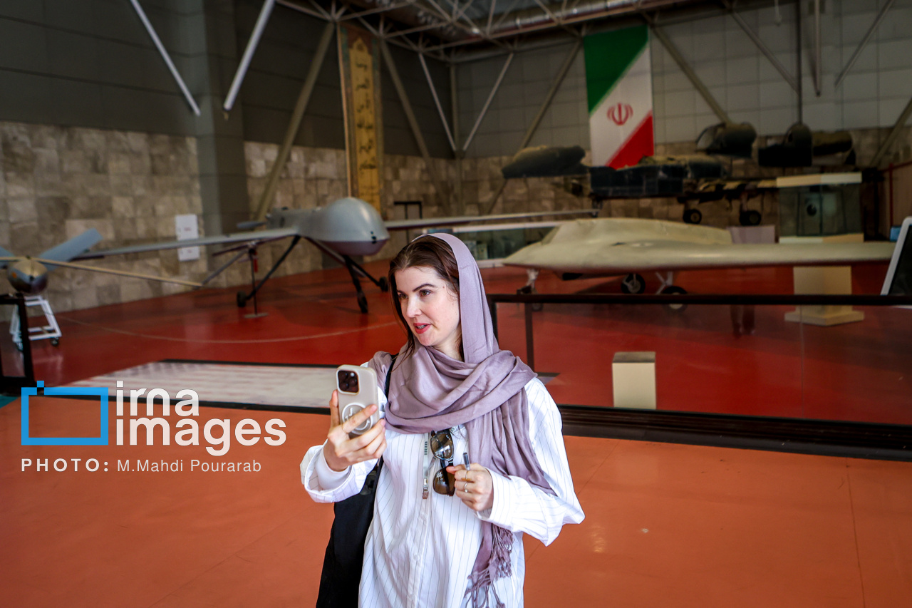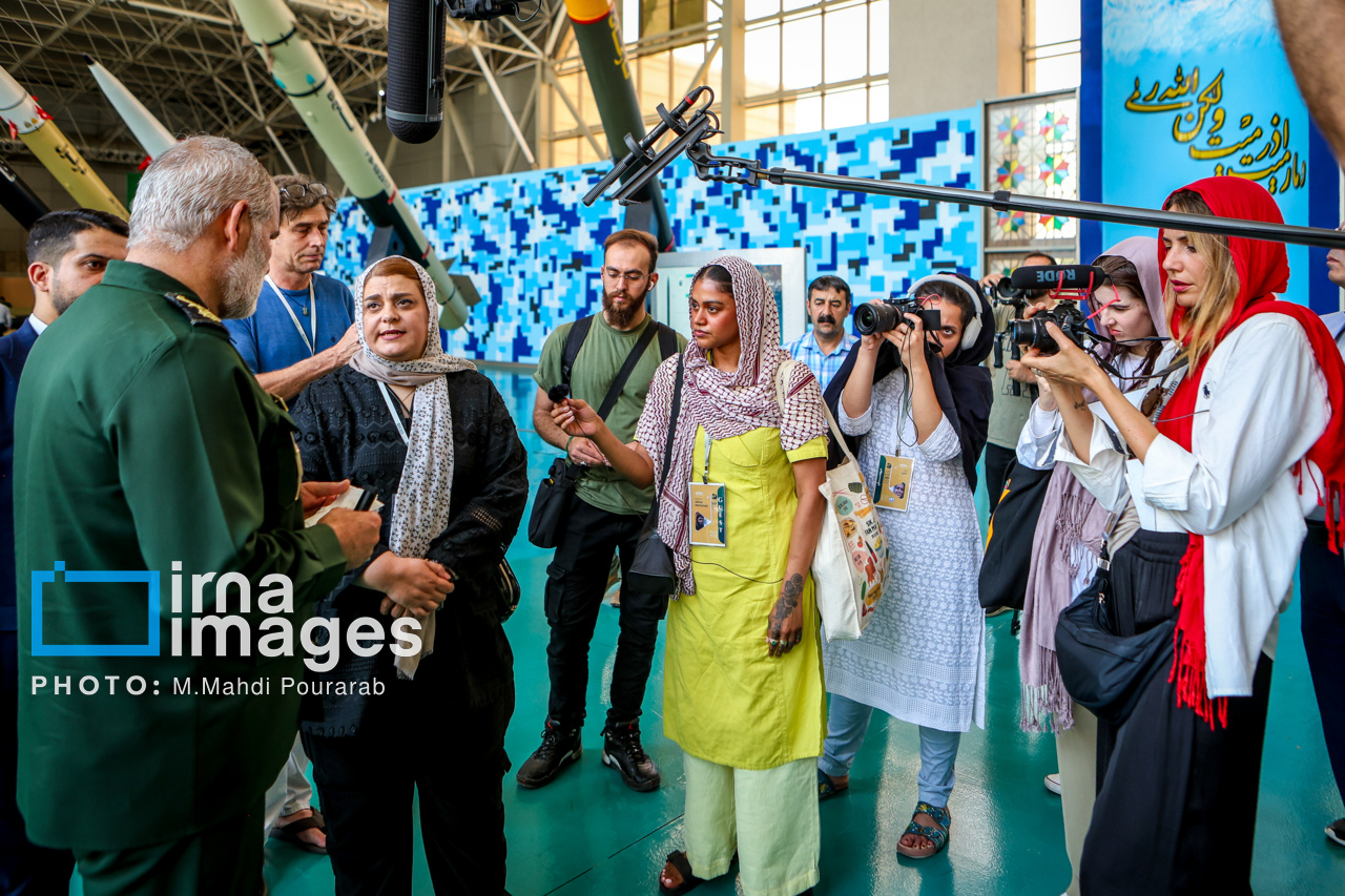 The media delegation toured the Islamic Revolution Guard Corps (IRGC) Aerospace Exhibition as well as locations recently targeted by the Zionist regime during its airstrikes on the capital.