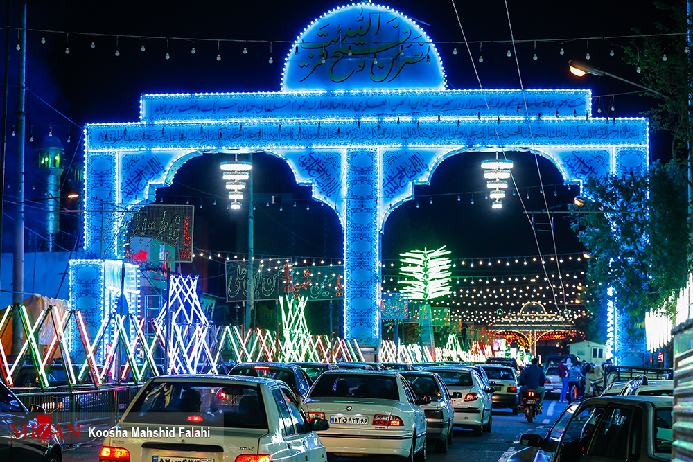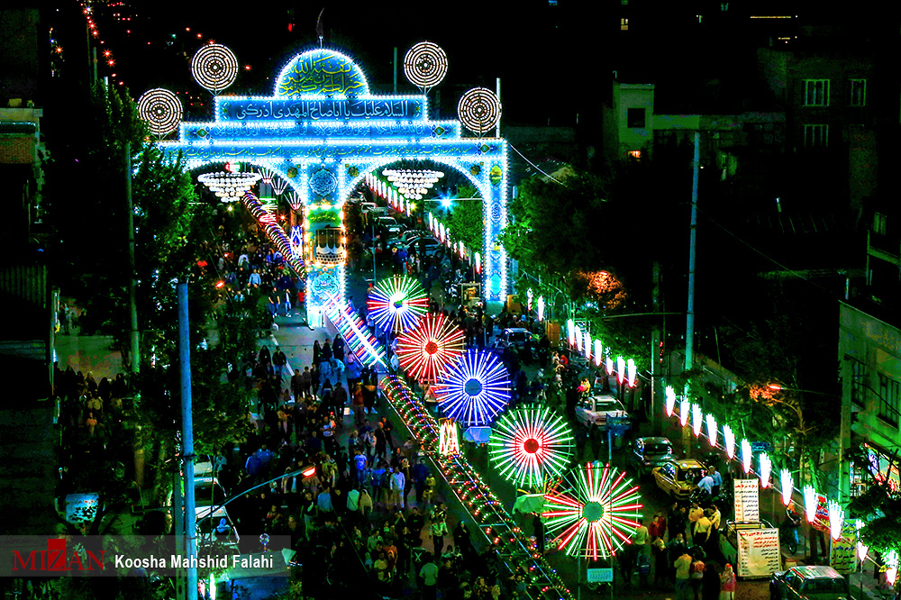 To mark the Imam’s birthday, Iranians bedeck the streets, hang lights around villages, towns, and cities, attend festive events at mosques and religious centers, and distribute votive refreshments.