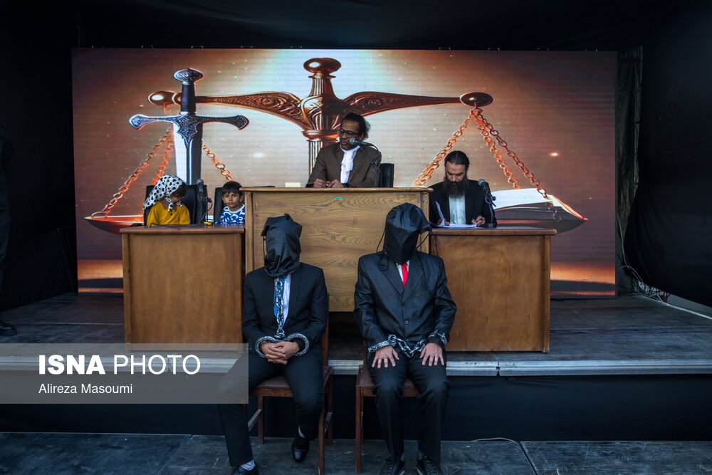 Cultural and educational displays were set up along the march route by student and community groups to depict “the true meaning of arrogance” in international politics.