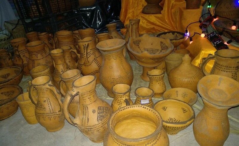 The patterns and designs on Kalpouregan pottery are geometrical and remind us of ancient patterns. The decorations on them are abstract forms that have been passed from generation to generation, and they tell us about the dreams and wishes of ancient Baluchi women. They still make pottery in exactly the same way that their ancestors would have done, and what gets drawn on their pottery is whatever is on their minds.