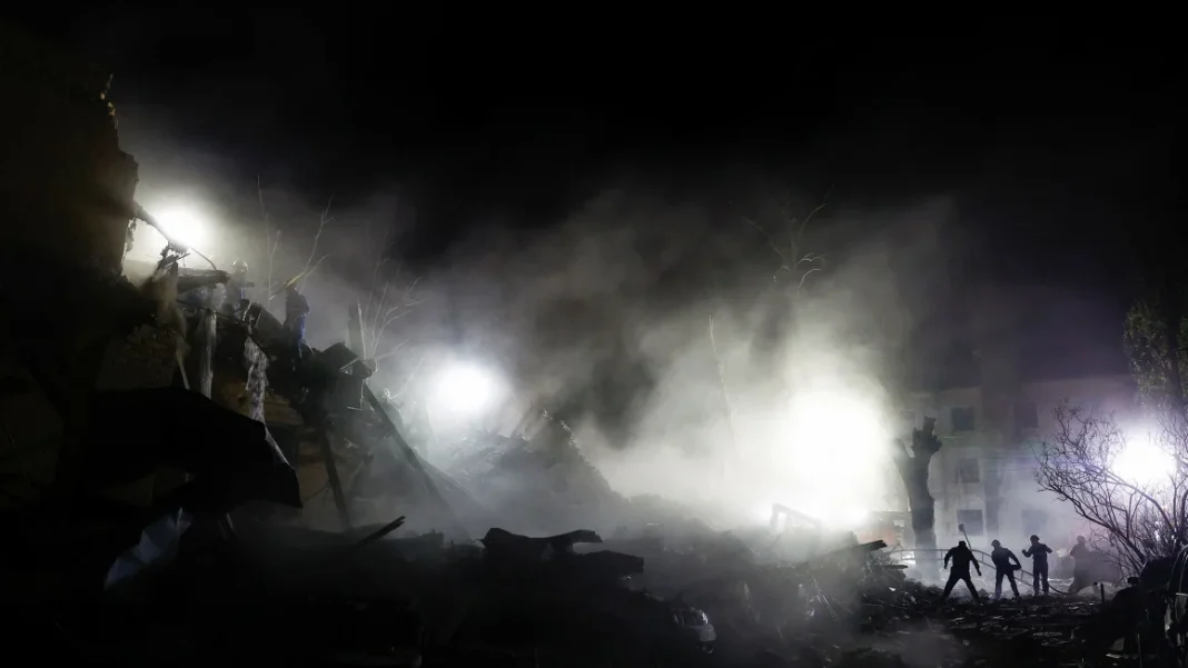 Kyiv’s mayor, Vitali Klitschko, said rescuers were pulling survivors from under the rubble. The injured included six children and a pregnant woman. A house, cars, and other buildings were set on fire, with extensive damage caused by falling debris in several districts, he said.
