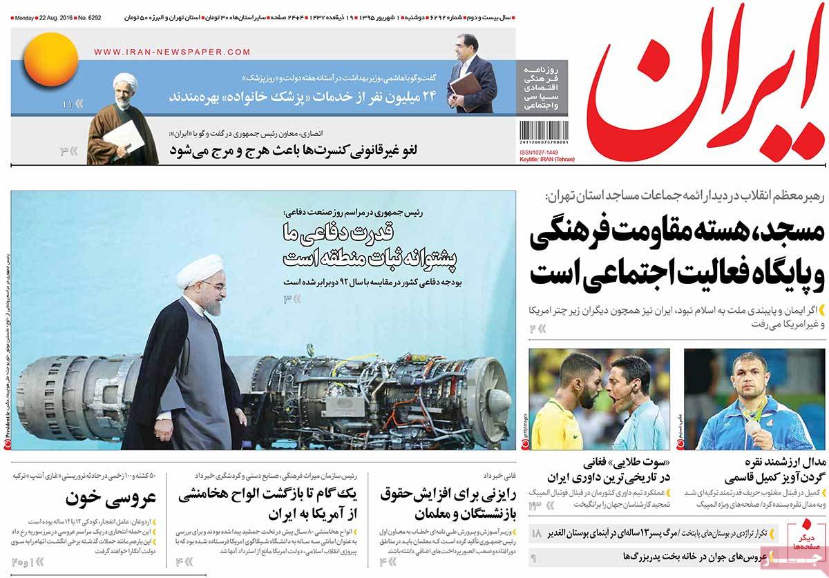 Newspapers on Monday covered the remarks by the Leader of the Islamic Revolution Ayatollah Seyyed Ali Khamenei in a gathering of prayer leaders and clerics.