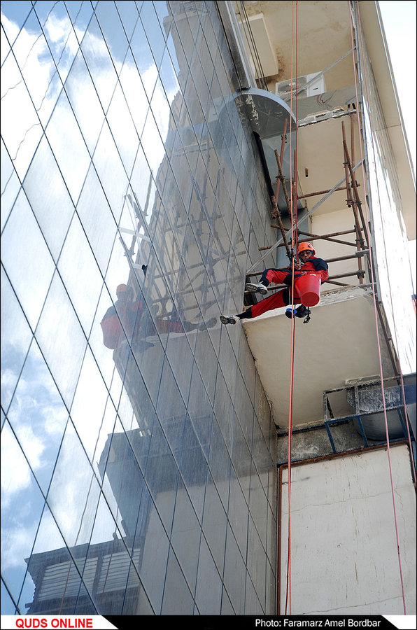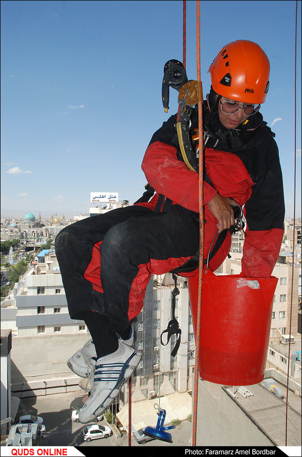 She chose the job after what was supposed to be a one-off exciting experience of working at height. The experience was so phenomenal that Farzaneh closed her clothing store in one of Mashhad’s shopping centres and became a height worker. She made the decision despite her family’s objections. Today, she carries out construction projects on Mashhad’s main skyscrapers.