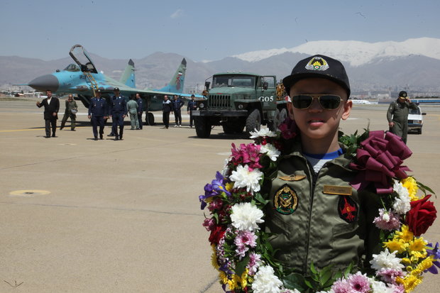Then they moved and approached the hangars of MiG-29 fighter jets. A military march was played to pay tribute to captain Benyamin. He shook hands with several pilots, who briefed Benyamin on the features of MiG-29 jet fighters. The captain listened to the pilots carefully and enthusiastically.