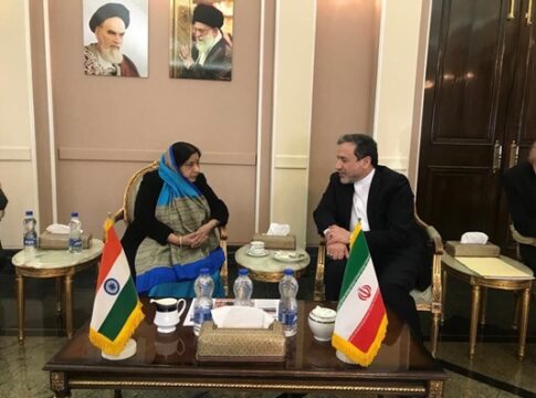 Indian Foreign Minister Sushma Swaraj had a short stopover in Tehran on Saturday to discuss the recent deadly attacks in Iran and India whose perpetrators were linked to Pakistan.
