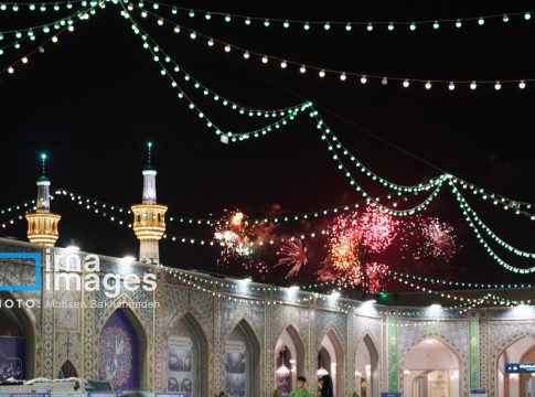 The courtyard and the Holy Shrine of Imam Ali ibn Musa al-Reza in northeastern Iranian city of Mashhad were illuminated with light and joy on Thursday night on the occasion of the birth anniversary of the eighth Shia imam.
