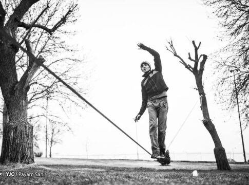 Slacklining, which refers to the act of walking or balancing along a suspended length of flat webbing that is tensioned between two anchors, is gaining great popularity among Iranian youths.