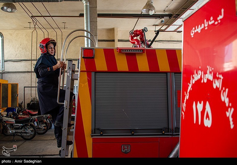 The twelve-member team of women firefighters in Shiraz, Iran, who work 24/7 in three shifts, rush to the aid of citizens from their station located at the beginning of Kholdbarin Street.